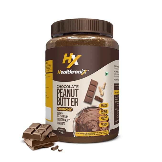 Discover the ultimate blend of indulgence and nutrition with Healthronix Dark Chocolate Peanut Butter – a premium chocolate peanut butter crunchy spread made from 100% natural peanut butter and rich dark chocolate. This high protein peanut butter is not just delicious but also functional, making it the best peanut butter choice for active and health-conscious individuals. Crafted with care, this natural peanut butter contains no added preservatives. Whether you enjoy it on toast, in smoothies, or as a topping for fruits and oats, this protein chocolate peanut butter delivers a satisfying and nourishing experience. The peanut butter crunchy texture is complemented with slight nutty bits, providing a delightful bite every time. This chocolate peanut butter jar is ideal for families, fitness lovers, and anyone seeking a flavorful, versatile spread. Being vegan and gluten-free, it suits various dietary needs while giving you the bold taste of peanut butter chocolate spread and chocolate butter in every spoonful. Healthronix brings you a peanut butter chocolate experience like no other — a powerful, peanut butter high protein formula that proves nutritious can also be indulgent.